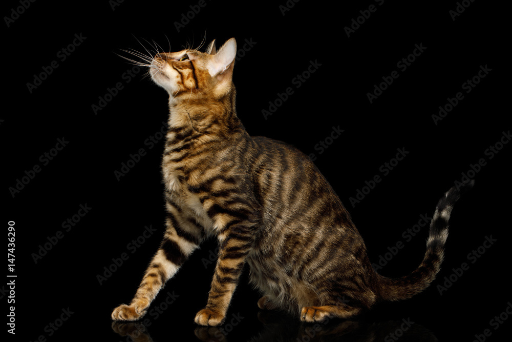 Toyger Cat Sitting On Isolated Black Background Side View Stock Photo Adobe Stock